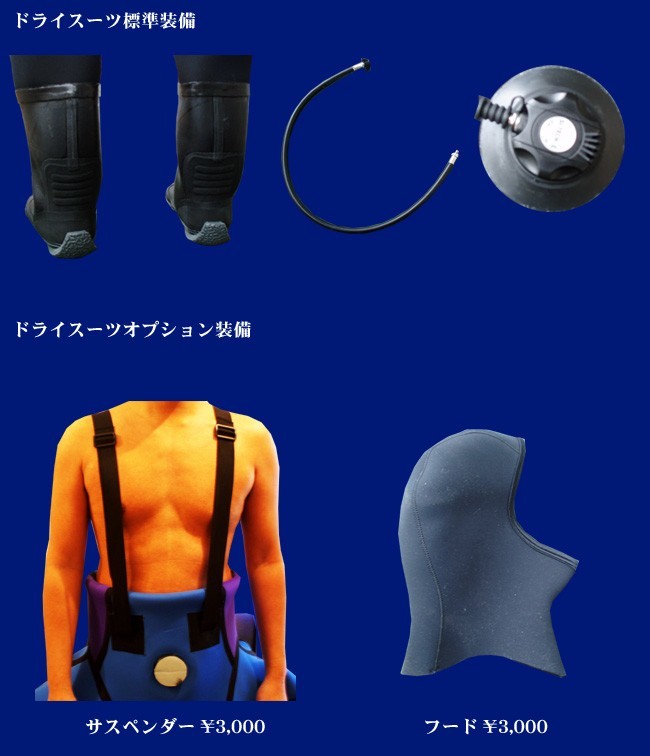 ダイビング用ドライスーツ 中空ホース付属の本格派 バルブは日本製DWです。