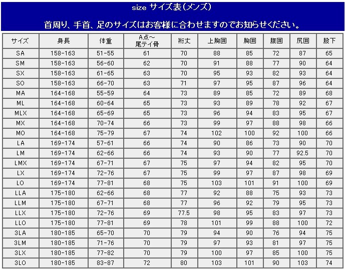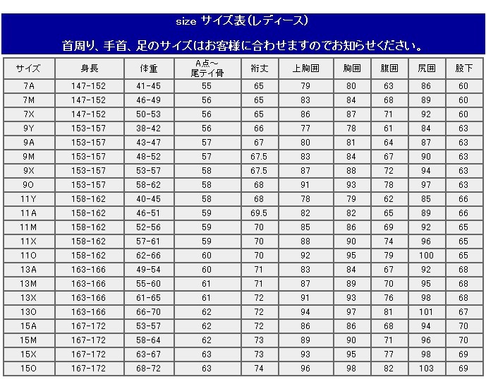 首周り、手首、足のサイズはお客様に合わせますのでお知らせください。